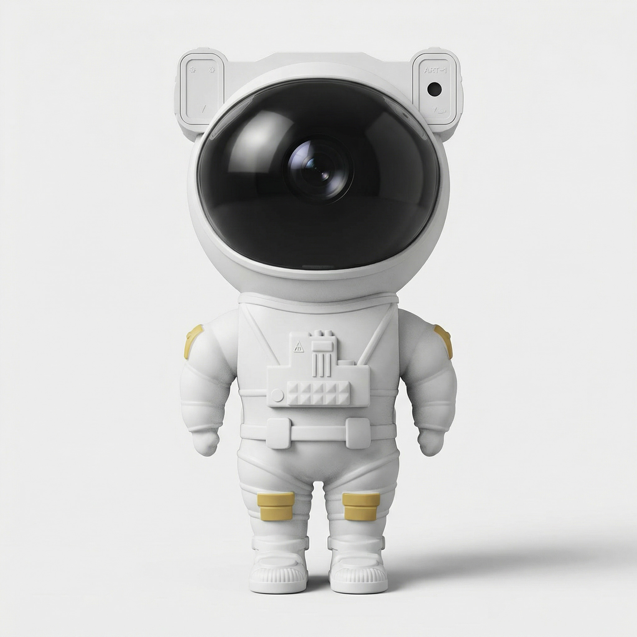 Kosmiczny design: Unikalny kształt astronauty dodaje projektorowi charakteru i sprawia, że staje się on nie tylko funkcjonalnym urządzeniem, ale również stylowym elementem dekoracyjnym w każdym wnętrzu.